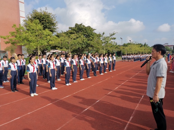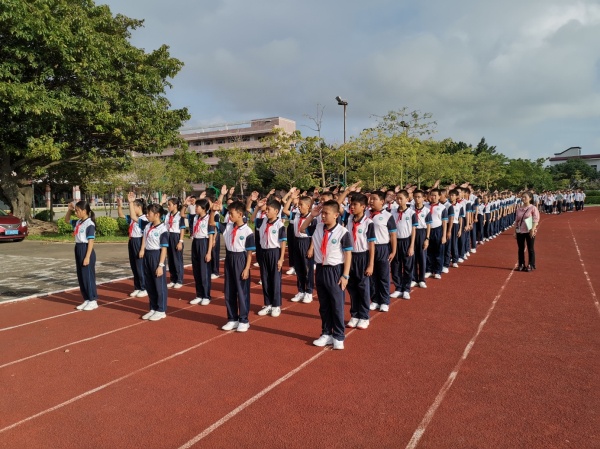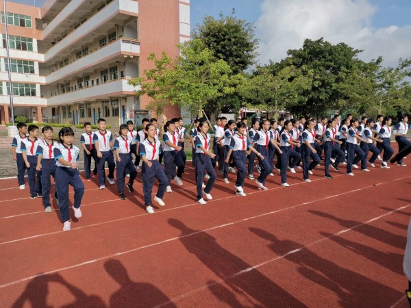2020年9月21日,秋風(fēng)微涼,金桂飄香,港口鎮(zhèn)大南中學(xué)2020級初一新生入學(xué)訓(xùn)練成果匯演在足球場拉開序幕。