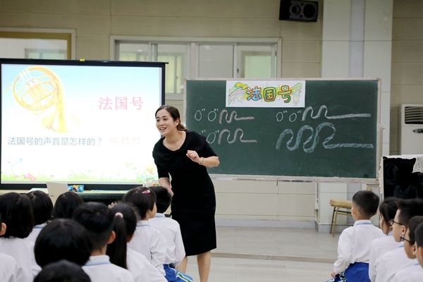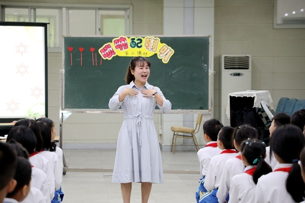 第二節(jié)課是華附小學(xué)校區(qū)的陳小靜老師執(zhí)教的二年級(jí)《嗩吶配喇叭》第二課時(shí)。本節(jié)課陳老師根據(jù)二年級(jí)孩子的特點(diǎn)創(chuàng)設(shè)情景,用闖關(guān)的方式激勵(lì)學(xué)生們學(xué)習(xí),用生動(dòng)的語言,優(yōu)美的肢體動(dòng)作和動(dòng)聽的歌聲讓學(xué)生感受美、體驗(yàn)美、表現(xiàn)美。由于是第二課時(shí),熟歌練本領(lǐng),陳小靜老師運(yùn)用柯達(dá)伊教學(xué)法,讓學(xué)生們?cè)谝魷?zhǔn)、節(jié)奏、聽覺上都有了基本認(rèn)知,對(duì)于提高孩子們的音樂基本素養(yǎng)非常有幫助。