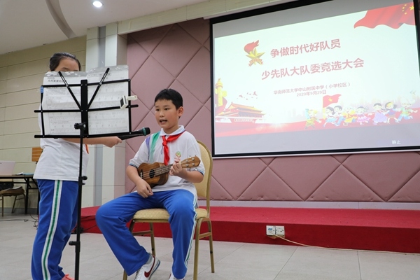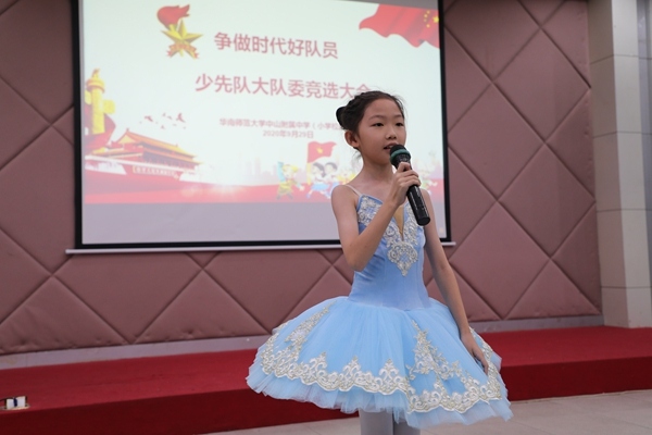 本次大隊委競選活動由三、四、五年級各中隊推選一名隊員參加。首先,他們依抽簽順序,分別進行競職演講及才藝展示。候選隊員們通過激情飽滿的演講以及彰顯個性的才藝展示,贏得了與會少先隊員代表們的陣陣掌聲。