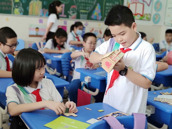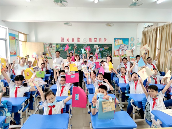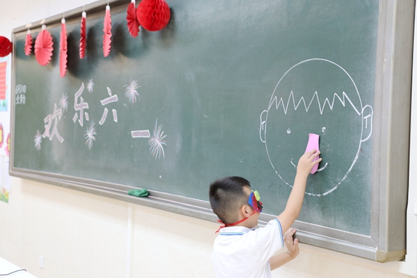 6月1日這一天,校園布置充滿童趣,彌漫著歡樂的氣氛,笑容洋溢在每個孩子天真稚嫩的臉上。升旗儀式結(jié)束后,令人期待的是一系列的體育娛樂活動,每一項(xiàng)游戲活動前都人頭攢動,每一項(xiàng)體育活動都激情澎湃,每一項(xiàng)文娛活動都才藝飛揚(yáng)???,雙腳夾球投籃游戲,考驗(yàn)的是學(xué)生的平衡能力和彈跳力,只見雙腳夾緊球,使勁向上一蹦,球就投進(jìn)籃子里,孩子們高興得手舞足蹈;盲人貼鼻子游戲,誤打誤撞,讓人忍俊不禁???,運(yùn)動場上,往返接力跑,同學(xué)們你追我趕,考驗(yàn)團(tuán)隊(duì)協(xié)作能力;齊心協(xié)力滾籃球,同學(xué)們相互配合,共度“難關(guān)”;輕松跳大繩活動,同學(xué)們宛如穿梭的燕子;籃球場上,高年級使出渾身解數(shù),呈現(xiàn)出一場場精彩紛呈的團(tuán)體籃球賽???,班級文藝活動,同學(xué)們有的高歌一曲,盡情抒發(fā)內(nèi)心的歡愉;有的玩轉(zhuǎn)魔方,一展身手;有的參加樂趣拼裝,腦力與手工結(jié)合,創(chuàng)意十足?;顒映浞终故玖巳A附小學(xué)子多才多藝、全面發(fā)展、積極向上的陽光氣質(zhì),活動熱度不斷推向高潮?;顒游猜暤摹八投Y物”環(huán)節(jié)更是為活動畫上圓滿的句號。