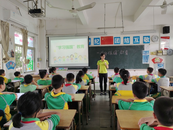 一直以來,港口港源學校全體師生在周世敏校長的帶領下,積極組織開展了“學習強國”學習平臺進校園的活動。通過大課間組織收看新聞聯播、班會課收看先進典型事跡等方式進行學習;通過建立“學習強國”班級群,發(fā)放“致家長的一封信”等,把推廣工作覆蓋到每一個家長群,發(fā)動家長與學生共同參與。結合學習平臺上學習資源豐富的特點,港口港源學校還利用班級交流群、班會課等多種形式分享心得體會,從而營造了集體學習的濃厚氛圍,進一步激發(fā)了全體教師和學生參與學習的動力和積極性。