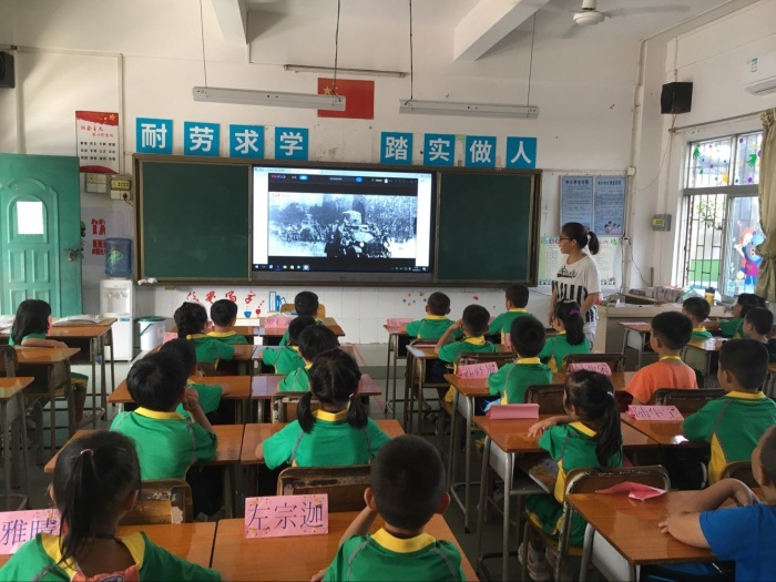 各年級各班根據(jù)學生年齡特點,精心選擇合適的活動內(nèi)容,采用學生易于接受的活動形式,組織開展活動。老師們向?qū)W生簡單的介紹了發(fā)生在70多年前那場戰(zhàn)爭的相關(guān)史實,有的班級給孩子們講述了抗日小故事,有的班級組織觀看抗日題材電影;有的班級組織觀看抗日史料圖片展。王二小、小英雄雨來、狼牙山五壯士……一個個抗戰(zhàn)英雄的故事;《地道戰(zhàn)》《南京大屠殺》《平原游擊隊》……一部部抗戰(zhàn)主題的影片;一張張日本侵略者血腥屠殺中國百姓的照片;一段中華民族深受蹂躪的屈辱歷史的回顧。