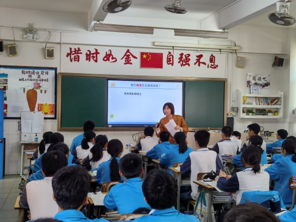 活動分兩個階段:第一階段隨堂聽課。中山市教育教學研究室語文教研員郭躍輝深入課堂聽課,大南中學初三年級語文老師宋穎上了一節(jié)“文學類文本閱讀”復(fù)習課。宋穎老師通過給學生閱讀支點的方法,引導(dǎo)學生深入閱讀文本,熟悉考點,幫助學生提高閱讀備考效率。