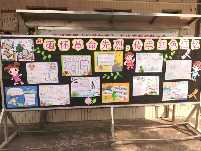 一至三年級的同學利用班隊課的時間,觀看革命經(jīng)典影片《記憶的力量》,把同學們帶進了那戰(zhàn)火紛飛的年代。一個個感人的故事,譜寫了一曲曲氣壯山河的英雄贊歌。戰(zhàn)場上,無數(shù)革命英烈,如楊根思、黃繼光、邱少云等中華英雄兒女,他們?yōu)楸Pl(wèi)祖國的安全和世界和平獻出了自己年輕的生命。讓同學們感受到了革命先烈的英勇,旨在激發(fā)他們不忘歷史、珍惜來之不易的美好生活!四年級同學講革命先烈的故事、六年級同學繪制“清明節(jié)”主題的手抄報、五年級的同學利用班隊課的時間制作心愿卡,寄托對先賢、先人之淡淡哀思。