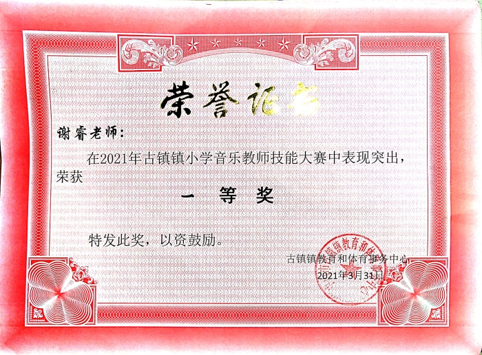 打印 | 2021年“古鎮(zhèn)鎮(zhèn)小學(xué)音樂(lè)教師技能大賽”落下帷幕,曹一小學(xué)謝睿老師獲得全項(xiàng)一等獎(jiǎng)。