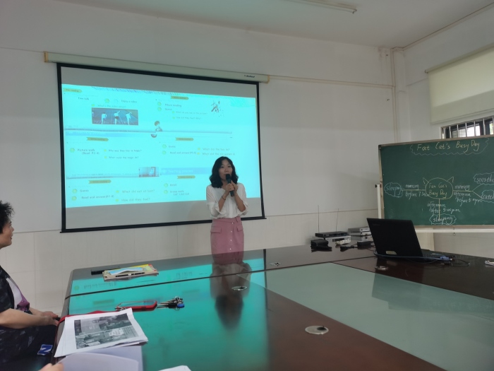 接著,科組老師共同觀摩了李靈燕老師和陳慧晶老師的說課和講故事的展示。本次說課繪本主題是Fat Cat’s Busy Day,李老師的說課環(huán)節(jié)緊湊、語言流暢、重難點(diǎn)突出,講故事環(huán)節(jié)語言生動、表演性強(qiáng),美中不足的是略有超時;陳老師的說課詳略得體、板書的設(shè)計(jì)較好、時間掌控較為合理,講故事環(huán)節(jié)表情豐富、趣味性強(qiáng),但說課過程的流暢度需要加強(qiáng)。