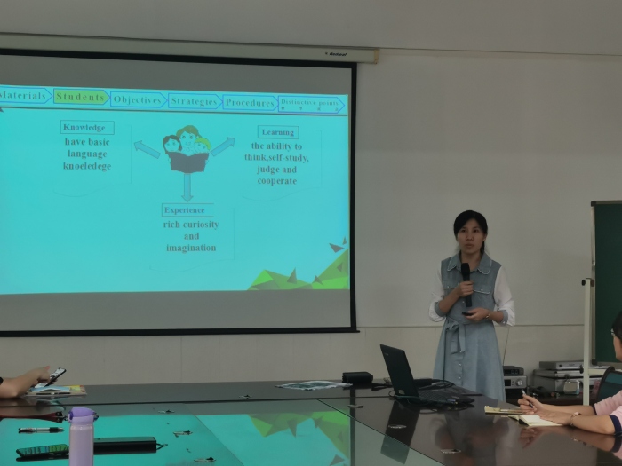 打印 |為規(guī)范教師課堂教學(xué)行為,加強(qiáng)教學(xué)常規(guī)管理,提高教育教學(xué)質(zhì)量,打造一支合作優(yōu)良、開拓創(chuàng)新、積極進(jìn)取的教師隊(duì)伍,4月8日下午,鎮(zhèn)南小學(xué)英語科組進(jìn)行了“一師一優(yōu)課”課堂教學(xué)研討活動。此次活動分為兩個議程,分別是陳澤旋、張雪兩位老師的課例展示,以及即將參加青年教師素養(yǎng)比賽的李靈燕、陳慧晶老師的說課、講故事展示。