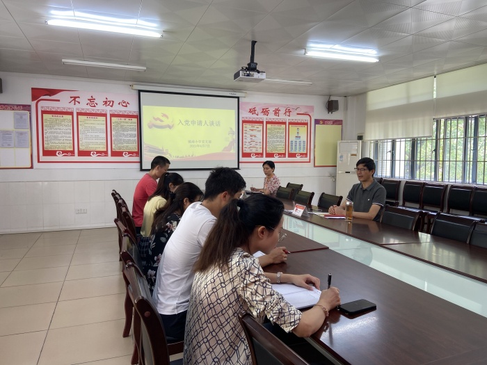 談話前,學(xué)校黨支部對(duì)入黨申請(qǐng)人的個(gè)人基本情況進(jìn)行了全面了解和分析,并詳細(xì)審核了申請(qǐng)人的入黨申請(qǐng)書(shū),對(duì)集體談話做了充分準(zhǔn)備。