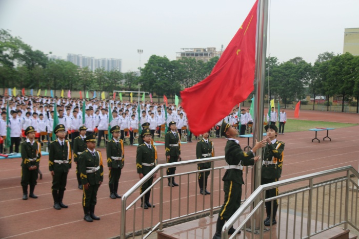 隨著莊嚴(yán)的國歌奏響,醒目的國旗手齊步前進,全體師生行注目禮,拉開了誓師大會的帷幕。