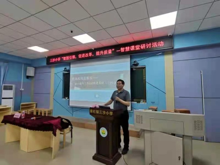參加研討活動的人員有中山市信息技術(shù)提升工程2.0辦公室吳寒冬主任、橫欄鎮(zhèn)教育和體育事務中心王春明專干和李偉業(yè)專干、三沙小學馮紅燕校長、三沙村黨委書記蘇日洪、三沙村黨委委員麥洪彬先生、讀書郎智慧課堂總監(jiān)賴小兵先生、三沙小學家委會會長吳炎申先生以及鎮(zhèn)內(nèi)各兄弟學校的教師代表、三沙小學全體行政和語、數(shù)、英全體教師,可謂濟濟一堂。