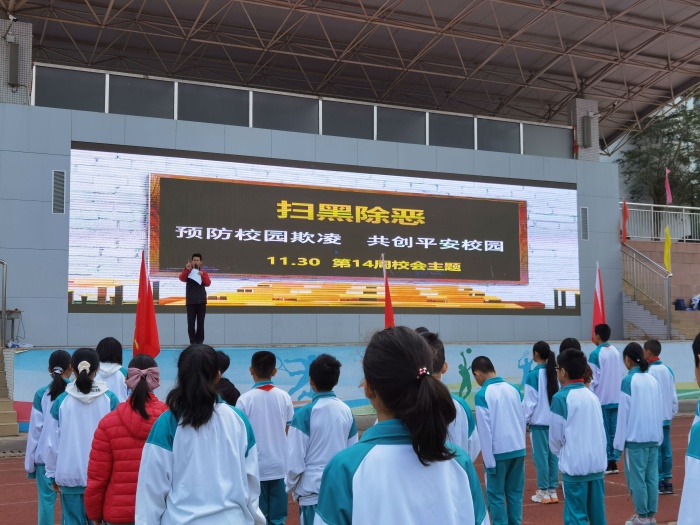 為深入貫徹十九大精神,切實(shí)保護(hù)學(xué)校全體師生的合法權(quán)益,維護(hù)校園的安全穩(wěn)定,杜絕校園黑勢力和欺凌現(xiàn)象的發(fā)生,11月30日上午,火炬二中面向全校師生開展了一次“掃黑除惡進(jìn)校園,平安與我共成長”主題校會(huì)。