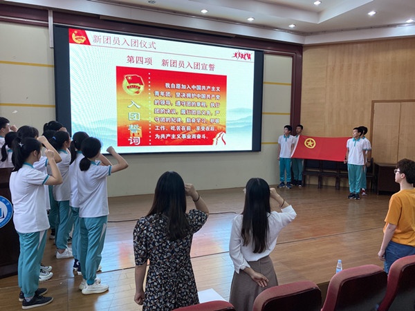 在響亮的國(guó)歌聲中拉開了入團(tuán)儀式的帷幕,學(xué)校團(tuán)委書記葉大貴宣布新團(tuán)員名單,校團(tuán)員教師、老團(tuán)員為新團(tuán)員佩戴團(tuán)徽,頒發(fā)團(tuán)章,每個(gè)團(tuán)員從佩戴上團(tuán)徽的這一刻起,就要認(rèn)清自己肩負(fù)的責(zé)任,努力履行團(tuán)員的義務(wù),用實(shí)際行動(dòng)來(lái)表明自己無(wú)悔于“共青團(tuán)員”這個(gè)光榮的稱號(hào)。團(tuán)旗下嚴(yán)肅、莊嚴(yán)的入團(tuán)宣誓讓新團(tuán)員將入團(tuán)誓詞牢記在心,并以此激勵(lì)自己作為一名共青團(tuán)員的榮譽(yù)感和責(zé)任感。隨后入團(tuán)介紹人代表黃濤同學(xué)宣讀團(tuán)員的權(quán)利和義務(wù),新團(tuán)員代表?xiàng)钛沛猛瑢W(xué)發(fā)言:作為一名中學(xué)生能積極申請(qǐng)入團(tuán)并被批準(zhǔn)入團(tuán),感到非常的光榮,今后將會(huì)繼續(xù)努力,造就成為社會(huì)的有用之材,老團(tuán)員代表李韻兒同學(xué)更是對(duì)新加入的團(tuán)員提出了寄望,希望大家時(shí)刻牢記今天的入團(tuán)宣誓,嚴(yán)格要求自己,在學(xué)校里好好學(xué)習(xí),積極向上,爭(zhēng)做老師的好幫手,同學(xué)的好榜樣。