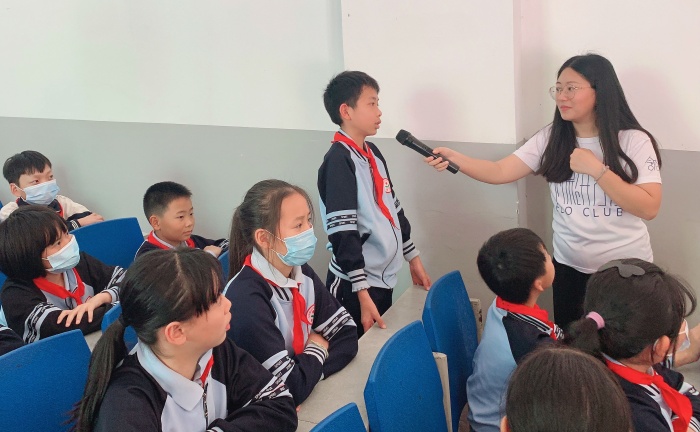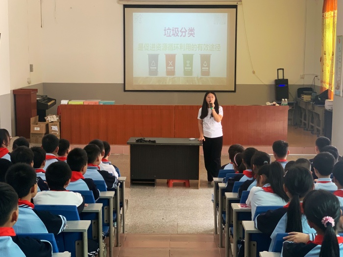在課堂上,社工與同學(xué)們熱情互動,通過知識搶答、趣味小游戲等,進一步增強了同學(xué)們垃圾分類的意識和保護環(huán)境的責(zé)任心。