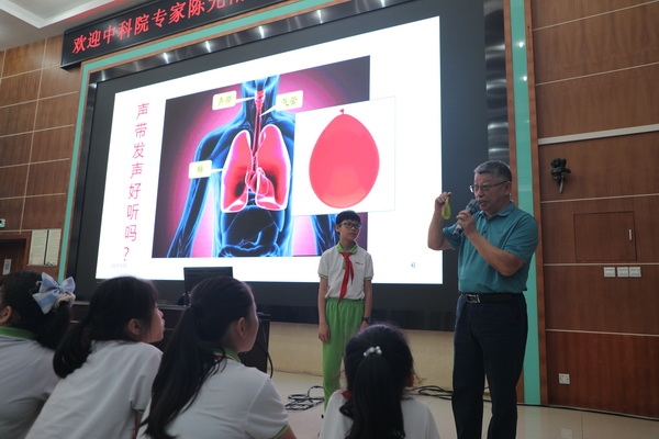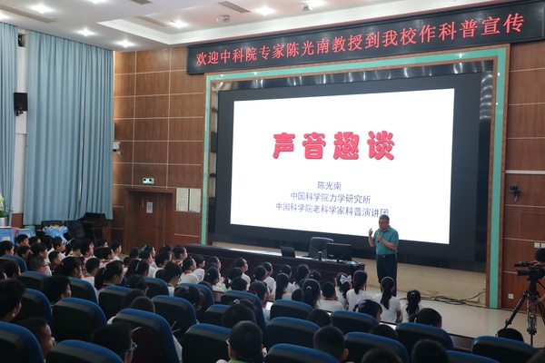 本次活動(dòng)由中國科學(xué)院專家陳光南教授主講,陳教授針對五年級(jí)學(xué)生的認(rèn)知水平選取了《聲音趣談》這一主題,以交流互動(dòng)的形式,讓學(xué)生在愉悅的氛圍中獲得了與聲音有關(guān)的科普知識(shí)。