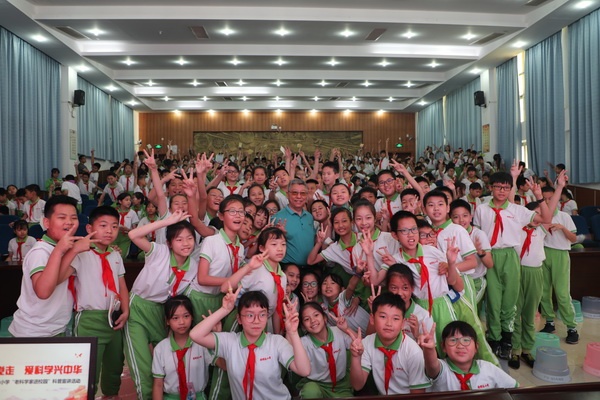 為引領(lǐng)大家認(rèn)識(shí)聲音,領(lǐng)略科學(xué)魅力,陳教授圍繞“聲音是怎樣產(chǎn)生的、如何聽到聲音?真的有獅吼功嗎?”等幾個(gè)方面,用妙趣橫生的圖像信息,幽默風(fēng)趣的科學(xué)語言,深入淺出的透徹講解,解釋了聲音的奧秘,為師生帶來了一場科普視聽盛宴。陳教授引用有力的數(shù)據(jù)與實(shí)例,從兩彈一星元?jiǎng)族X學(xué)森,到創(chuàng)作《歡樂頌》的交響樂王子貝多芬,再到用觸覺“讀”世界的海倫凱勒,娓娓道來,無不滲透對同學(xué)們的情感教育,向孩子們傳遞著對正確的人生態(tài)度。會(huì)場氣氛輕松、活躍,學(xué)生問答積極踴躍,師生互動(dòng)自然高效,高潮迭起,不時(shí)爆發(fā)出陣陣掌聲?;顒?dòng)最后,陳光南教授與學(xué)生親密合影。