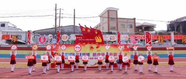 3月26日上午,黃圃鎮(zhèn)舉行了“紅領(lǐng)巾獎?wù)隆睜幷聠觾x式。作為黃圃鎮(zhèn)“紅領(lǐng)巾獎?wù)隆睜幷聠觾x式主會場和承辦單位,新地中心小學(xué)開展了“童心向黨迎華誕,新小爭章傳薪火”——“紅領(lǐng)巾獎?wù)隆睜幷卖呒t領(lǐng)巾廣場啟動儀式。鎮(zhèn)黨委委員龔文中,鎮(zhèn)團(tuán)委、鎮(zhèn)教育和體育事務(wù)中心、少工委、新地村負(fù)責(zé)人、市名師工作室代表、鎮(zhèn)15所學(xué)校少工委主任和大隊輔導(dǎo)員、新地中心小學(xué)全體師生共約1300多人參加了活動。