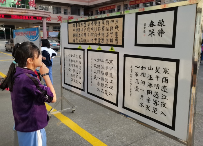 據(jù)悉,此次活動(dòng)旨在傳承中華優(yōu)秀傳統(tǒng)文化,豐富校園文化生活,激發(fā)學(xué)生的創(chuàng)作熱情,提高學(xué)生的審美能力,充分展現(xiàn)錦標(biāo)學(xué)校素質(zhì)教育改革和發(fā)展的系列成果。本次師生書畫展示活動(dòng)在學(xué)校辦公樓一樓拉開序幕。展覽現(xiàn)場氣氛濃烈,一幅幅精彩生動(dòng)的書法、繪畫、剪紙等作品吸引眾多師生前來欣賞,成為學(xué)校一道靚麗的風(fēng)景線。 此次展覽作品內(nèi)容豐富、形式多樣。有的描繪偉人故里中山市的優(yōu)美環(huán)境;有的描繪祖國大好河山的秀麗風(fēng)景;有的臨摹先賢大作,蒼勁雄渾,有模有樣.......這些優(yōu)秀的書法繪畫作品不僅展示了錦標(biāo)學(xué)校師生卓越的才藝,還營造了濃厚的書香氛圍、豐富了師生們的課余文化生活,不僅展現(xiàn)了全體師生的高雅藝術(shù)情操和良好精神風(fēng)貌,更體現(xiàn)錦標(biāo)學(xué)校多年來始終倡導(dǎo)并努力實(shí)踐學(xué)生“德、智、體、美、勞”全面發(fā)展觀念的豐碩成果。。