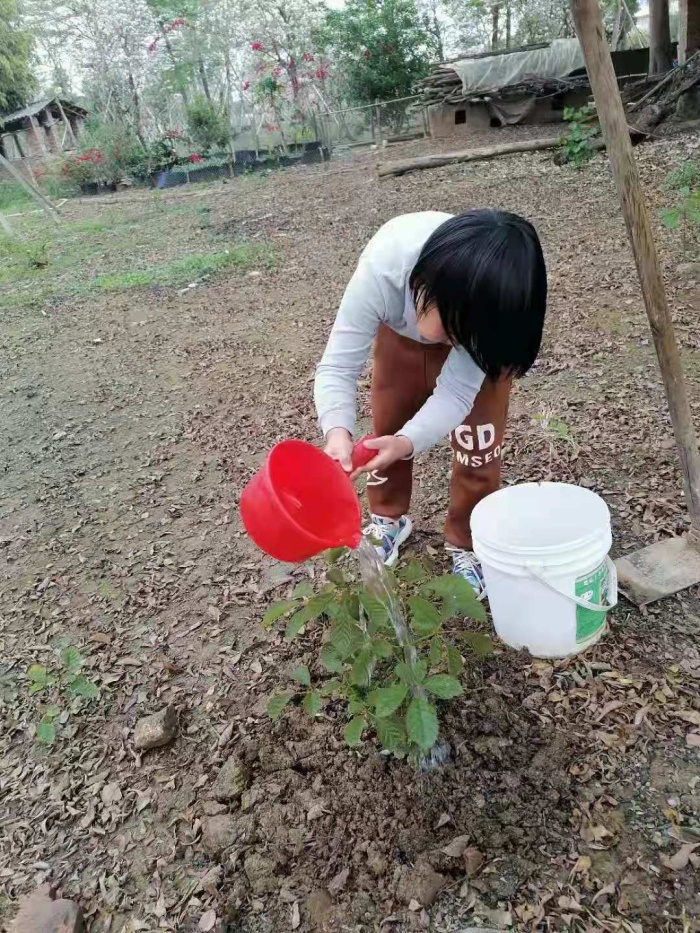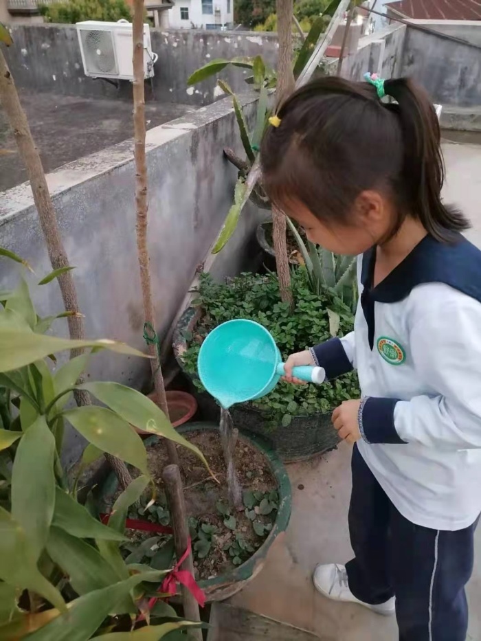 接下來的幾天里,同學(xué)們自發(fā)地給家中的植物進(jìn)行一次次的愛樹護(hù)綠行動,為小樹澆水、施肥,除雜草。