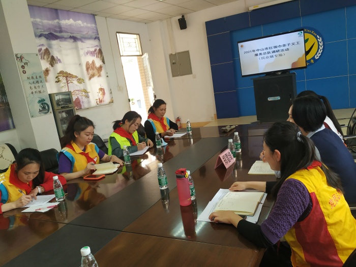 會(huì)議室中,民眾鎮(zhèn)6所公辦學(xué)校的紅領(lǐng)巾親子義工服務(wù)隊(duì)負(fù)責(zé)人參加了調(diào)研座談會(huì)。主持調(diào)研活動(dòng)的是中山市紅領(lǐng)巾親子義工服務(wù)總隊(duì)的鄭雪綺老師。鄭老師了解了民眾鎮(zhèn)各校紅領(lǐng)巾親子義工隊(duì)的概況、近年開展的活動(dòng)、特色和亮點(diǎn)、資金來源、激勵(lì)手段、遇到的困惑和問題等,并對(duì)民眾鎮(zhèn)以后開展紅領(lǐng)巾親子義工工作提出了寶貴意見。座談會(huì)上氣氛活躍、融洽,隨著每位老師們講述的聲音,進(jìn)入了一場(chǎng)又一場(chǎng)的親子義工志愿服務(wù)場(chǎng)景,現(xiàn)場(chǎng)感受到民眾鎮(zhèn)紅領(lǐng)巾親子義工服務(wù)良好的發(fā)展態(tài)勢(shì)。