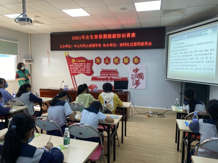 青春期的女生隨著生理、心理的變化,正面臨朝氣蓬勃又燥動(dòng)不安的花季,她們的心中充滿希望和夢想、煩惱和困惑。為了讓青春期女生了解自身的生理發(fā)育情況,正確對待青春期發(fā)生的各種變化,培養(yǎng)女生良好的心理素質(zhì),更好地學(xué)習(xí)和生活。中山市民眾新徽學(xué)校聯(lián)合浪網(wǎng)社區(qū)居委會(huì)、民眾鎮(zhèn)衛(wèi)生服務(wù)中心于2021年3月30日組織五、六年級女生在浪網(wǎng)社區(qū)多功能會(huì)議室參加青春期衛(wèi)生保健知識講座。本次講座聘請了民眾鎮(zhèn)衛(wèi)生服務(wù)中心覃小梅醫(yī)生和周敏華醫(yī)生主講。