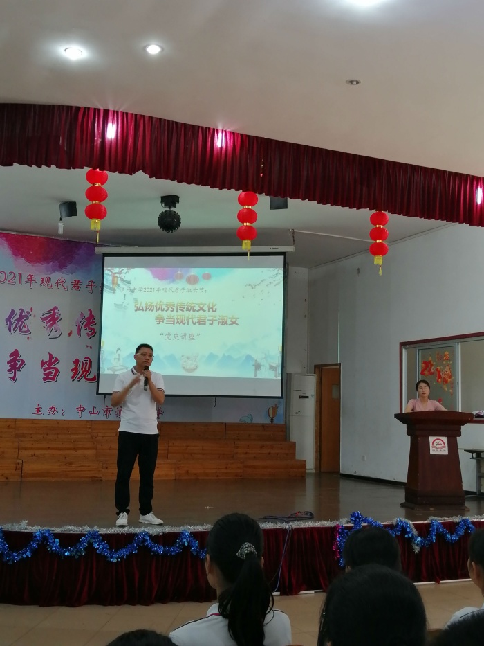 2021年3月29日,為慶祝中國共產(chǎn)黨成立100周年,重溫黨的光輝歷史,浪網(wǎng)中學結(jié)合校園特色活動---“現(xiàn)代君子淑女節(jié)”,開展了一場“弘揚優(yōu)秀傳統(tǒng)文化,爭當現(xiàn)代君子淑女之‘黨史講座’”活動。