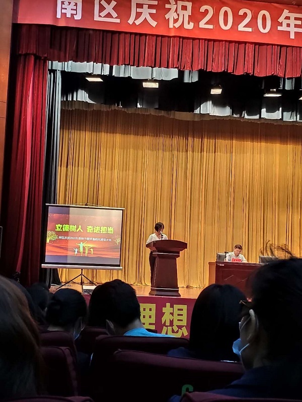 活動(dòng)三,開展師德專題培訓(xùn),學(xué)校在教師培訓(xùn)會(huì)上多次表揚(yáng)了吳燕芬、林素湘等抗疫先鋒的典型事跡,吳燕芬還作為南區(qū)的代表在中山好人南區(qū)分會(huì)場、南區(qū)慶祝第36個(gè)教師節(jié)大會(huì)上作先進(jìn)個(gè)人發(fā)言。林素湘老師榮獲2020年中山市師德標(biāo)兵稱號,吳燕芬榮獲中山市三八紅旗手稱號。學(xué)校還專門制作了“優(yōu)秀教師”的宣傳專欄,把榮獲中山市師德標(biāo)兵的林素湘老師、中山市三八紅旗手的吳燕芬老師、年度績效考核優(yōu)秀的廖碧云老師、區(qū)優(yōu)秀教師李麗蘋老師和區(qū)優(yōu)秀教師楊杏媚老師這五位老師的事跡進(jìn)行大力宣揚(yáng)。