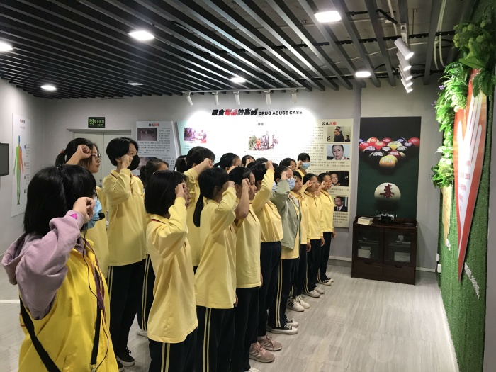 參觀過程中,講解員分別從毒情形勢、毒品樣品展示、禁毒法律法規(guī)、禁毒史實(shí)和打擊毒品違法犯罪成果進(jìn)行了詳細(xì)的講述。面對著一幅幅圖片資料和實(shí)物展示,同學(xué)們?nèi)轿?、多角度地了解了禁毒歷史和毒情形勢,對毒品的危害性和禁毒的必要性有了更為全面的認(rèn)識。除了認(rèn)真聽取教育基地工作人員的解說、觀看圖片、實(shí)物、視頻,同學(xué)們還積極參與禁毒知識搶答,對毒品的性質(zhì)、種類、危害以及南區(qū)近年來的禁毒成果有了更深的了解與認(rèn)識,進(jìn)一步意識到保持積極健康的生活方式、提高防毒意識、增強(qiáng)防毒能力的重要性,尤其對新型毒品和濫用止咳水給青少年帶來的危害有了更深的體會。