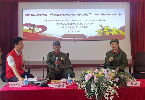 ——南區(qū)街道黨史教育百姓宣講暨“紅色印記”南區(qū)黨群故事分享活動到馬嶺小學發(fā)布時間:2021-04-07 12:59 信息來源:本網(wǎng)站 瀏覽次數(shù):0