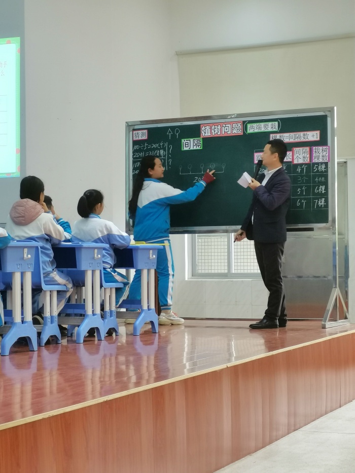 緊接著,神灣中心小學(xué)蔡林老師執(zhí)教五年級《植樹問題》,課堂上帶著孩子們積極思考,得出了多種方法,列表法、畫圖法,向我們充分展示了生本課堂。