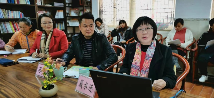 之后,新圩小學的朱華春副校長結(jié)合當前背景下班級特色建設問題進行了深入剖析,就“如何創(chuàng)建有特色的班集體”,解讀了班級特色創(chuàng)建的理念、思想、途徑和方式。從班級管理到班級建設的觀念轉(zhuǎn)變呼吁全體班主任要提升專業(yè)性發(fā)展能力,主動建設班級,以班級文化引領班級發(fā)展,最后還為班主任進行特色班級建設提供了各種思路,比如:經(jīng)典引路、童話引路、寓言引路、讓美文為青春導航目和吟誦美文等。