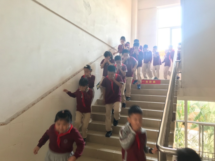 上午10:00,隨著“嗚嗚……”應急警報聲的響起,演練正式開始。各年段負責人及各樓梯口值崗老師第一時間到崗,協(xié)助學生隊伍快速、有序的撤離;各班主任、任課教師指導學生彎腰慢跑,同時用手帕等捂住口鼻,跟著隊伍迅速撤離到指定的安全區(qū)域。整個過程師生都能做到有秩序、快速,沒有出現(xiàn)混亂的場面。演練結(jié)束后,各樓層負責人第一時間將應急疏散情況反饋給陳文麗主任,并對各項細節(jié)問題進行小結(jié)。這次的消防應急疏散演練活動進行得很順利,安全撤離用時2分40秒。