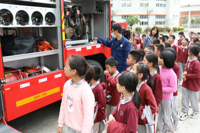 接著,三鄉(xiāng)消防大隊(duì)隊(duì)員向全體師生講解和示范滅火器的使用步驟,并請(qǐng)部分師生代表上前操作,讓師生掌握了滅火器的使用方法。隨后,組織師生參觀消防車,提高了師生對(duì)消防器材的了解。本次消防演練活動(dòng)的開展,強(qiáng)化了師生的消防安全意識(shí)。