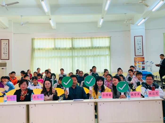 大賽伊始,由主持人楊羽辰老師介紹比賽流程、說明比賽規(guī)則,宣布比賽正式開始。比賽采用淘汰制,來自神灣中心小學(xué)、神舟學(xué)校和育才學(xué)校的三支參賽隊(duì)伍,共12名學(xué)生,按照事先商定好的出場(chǎng)序號(hào),依序輪流進(jìn)行現(xiàn)場(chǎng)詞語(yǔ)單字的聽寫,由黃紹平老師、姚雪英老師、孫照敏老師和吳慧珊老師組成的評(píng)委團(tuán)根據(jù)出示的正確答案進(jìn)行舉牌裁定。