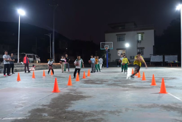 下午5:10,大部隊(duì)到達(dá)封開縣裕豐村,受到神灣鎮(zhèn)扶貧辦駐村書記李靖宇同志的熱情招待,他向老師們介紹了村里的孩子基本情況,孩子們?cè)诖謇锏妮o導(dǎo)點(diǎn),是他們晚上放學(xué)回來的主要學(xué)習(xí)地方,旁邊有個(gè)籃球場(chǎng),孩子們的體育鍛煉時(shí)間都比較少,接受專業(yè)的體育技能培訓(xùn)學(xué)習(xí)更不用說了。