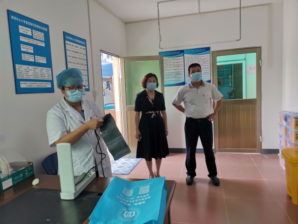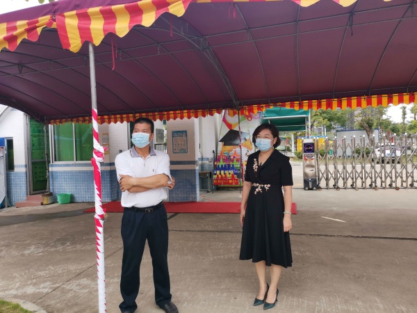特殊的開學典禮后,神灣鎮(zhèn)人大主席李明生在譚瑞香校長的陪同下,參觀走訪了學校校醫(yī)室,查看防護物資的準備情況,詢問檢查了學校應急通道的完成情況,肯定了全校教職工為學生順利返校付出的努力。另一邊,神灣鎮(zhèn)衛(wèi)計局陳愛文同志親自抵達學生校車乘坐點的北門,在邱繼發(fā)副校長等人的陪同下,查看校車消毒清潔記錄表、詢問學生上下車體溫檢查的落實情況等,強調防疫防控期間也要常抓校車安全。為充分保障飯?zhí)霉芾砼c飲食安全,在李健主任的帶引陪同下,神灣鎮(zhèn)食監(jiān)所韓華彰所長一一查看了飯?zhí)霉ぷ魅藛T的健康證明材料,檢查了倉庫內糧米、雞蛋等生活物資的儲存情況,強調學校后勤部一定要確保食材的新鮮與安全,做到后勤力量有保障、學生飲食重安全。