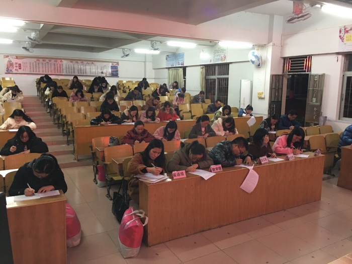 本次測(cè)試分為小學(xué)語(yǔ)、數(shù)、英各組,以及中學(xué)文綜組、理綜組和英語(yǔ)組,近100名教師參賽,各組使用不同的試卷,由學(xué)校教務(wù)處統(tǒng)一命題,專組專用,小學(xué)語(yǔ)文組以理論和實(shí)際相結(jié)合,有教育理論、拼音字詞、經(jīng)典詩(shī)詞、中外名著等常識(shí),也有語(yǔ)文教學(xué)案例分析;數(shù)學(xué)組以趣味數(shù)學(xué)、思維訓(xùn)練為中心命題;英語(yǔ)組主要圍繞教師語(yǔ)法知識(shí)練習(xí)與提升擬定內(nèi)容。中學(xué)各組主要圍繞往屆中考題型為中心來(lái)命題,讓老師們進(jìn)一步對(duì)中考題型的滲透。全體教師在無(wú)通訊設(shè)備的環(huán)境下進(jìn)行解題,從晚上8時(shí)至9時(shí),老師需在1小時(shí)內(nèi)完成答題,分別由學(xué)校教務(wù)處高華副校長(zhǎng)和韋紹祖主任負(fù)責(zé)監(jiān)考。老師們?cè)谀玫皆囶}后,都奮筆疾書(shū),時(shí)而握筆沉思,時(shí)而埋頭寫(xiě)字,看老師們認(rèn)真答題的樣子,大家應(yīng)該是做好了充分的準(zhǔn)備,對(duì)自身的專業(yè)知識(shí)技能是胸有成竹的。