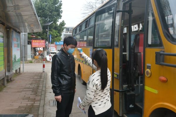 校車出發(fā)前一天下午消毒人員用含有效氯250mg/L—500mg/L的含氯消毒劑進行噴灑消毒處理;校車出發(fā)前打開車窗通風,然后出發(fā)去站點接學生;校車到達站點后,跟車老師鄭鳳嬌逐一對乘坐校車學生進行體溫測量,發(fā)現李同學的體溫是37.3度,鄭鳳嬌老師開始對其進行問詢,問詢內容包括學生的班別、姓名,以及是否在14日內從疫區(qū)返回或途經疫區(qū)、或與疫區(qū)回來的人士有過接觸,問完情況后,鄭老師撥打家長電話,由家長到停車點接學生到醫(yī)院就診,并報告給學校領導,學校領導層層上報。余校長接到報告后,立刻向神灣鎮(zhèn)急診中心報告。