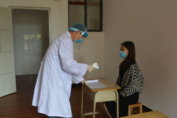 學生在教室午休前,班主任對全班進行午檢,在體溫測量時發(fā)現楊同學體溫達到37.3度,經詢問后,班主任高老師帶楊同學離開課室,并立即通知值日行政。值日行政了解情況后,通知班主任將剩余學生帶離課室到空曠處,通知學校疫情消毒人員,對教室進行消毒。由值日行政將楊同學帶到健康觀察區(qū),校醫(yī)再次檢測體溫,并詢問情況,由值日行政撥打電話通知家長接回,并囑托帶往醫(yī)院就醫(yī),然后上報校長,余校長接到報告,立刻向神灣鎮(zhèn)急診中心報告。