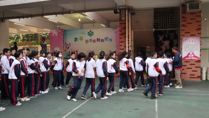 石岐太平小學(xué)一直把學(xué)生的安全擺在首位,借助復(fù)習(xí)動(dòng)員會(huì)議的最后,潘杰主任順勢(shì)和該校學(xué)生進(jìn)行了防暴安全演練,逐班解說了疏散的方法和注意事項(xiàng),各班同學(xué)在班主任和副班主任老師的指引下有序撤離,回到教室?;氐浇淌液蟀匆筮M(jìn)行相關(guān)的關(guān)門窗的工作。