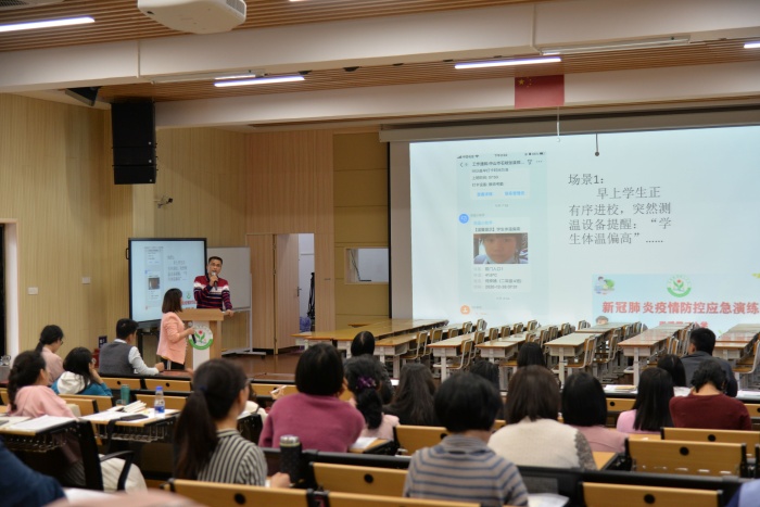 活動伊始,李振華副校長在教師會議上強(qiáng)調(diào)目前新冠肺炎國際上的疫情形勢依然非常嚴(yán)峻,近期,全國各地也零星出現(xiàn)疫情反彈的現(xiàn)象,為了切實(shí)提高本校疫情防控的應(yīng)急處置能力,李振華副校長帶領(lǐng)全體教師再次學(xué)習(xí)新冠肺炎疫情防控知識,包括防控核心、防控之策、應(yīng)對之策等基本知識。接著,就校園常規(guī)情景進(jìn)行現(xiàn)場演練,全體教師也進(jìn)行了互動學(xué)習(xí)。在老師們精彩的解答后,李振華副校長也作出了細(xì)致的補(bǔ)充。老師們認(rèn)真傾聽,積極參與互動、交流,展現(xiàn)出張溪鄭二小學(xué)教師的良好面貌。
