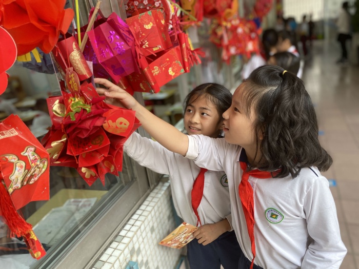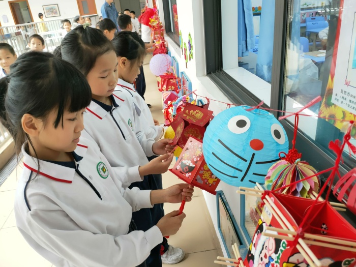 “元宵節(jié),花燈俏?!睘榱俗屚瑢W(xué)們親身體驗傳統(tǒng)文化的魅力,學(xué)校開展了“迎元宵花燈制作”活動。同學(xué)們充分利用彩紙、利是封、空瓶子等身邊的材料,變廢為寶,制作出了一個個創(chuàng)意無窮的環(huán)?;?,迎接元宵節(jié)的到來。走在教學(xué)樓的走廊上,處處張燈結(jié)彩, 一個個精美的花燈,吸引了師生們紛紛駐足,他們時而欣賞,時而贊嘆。一盞盞花燈成了校園里一道喜氣洋洋的風(fēng)景,整個校園充滿了元宵節(jié)的喜慶氣氛!