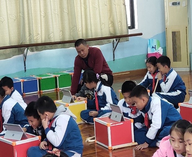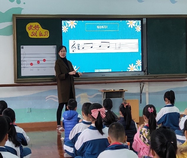 首先由石岐中心小學(xué)大信學(xué)校謝華老師帶來四年級(jí)豎笛旋律創(chuàng)編課《吹好sol la si》。謝老師重點(diǎn)教授豎笛sol la si的吹奏指法。她通過三條節(jié)奏練習(xí)讓學(xué)生熟悉sol la si三個(gè)音的指法,隨后用“師問生答”的方式引導(dǎo)學(xué)生進(jìn)行旋律創(chuàng)編,鞏固了學(xué)生對(duì)sol la si三個(gè)音的指法掌握,最后學(xué)生兩人一組在平板設(shè)備上通過西貝柳斯軟件用sol la si三音進(jìn)行旋律創(chuàng)編并展示。謝老師教學(xué)設(shè)計(jì)新穎獨(dú)特,在傳統(tǒng)課堂的基礎(chǔ)上加入了數(shù)字化信息設(shè)備,各個(gè)環(huán)節(jié)環(huán)環(huán)相扣,層層深入,為大家?guī)砹艘还?jié)豎笛與創(chuàng)編相結(jié)合的優(yōu)質(zhì)課。謝老師這一節(jié)音樂課又“新”又“潮”,華師附小的老師直言讓人大開眼界,令人稱奇。
