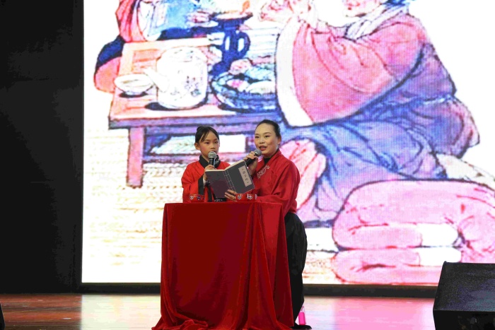 二、三年級的親子誦讀展演異彩紛呈。孩子和爸爸媽媽一起,通過親子共讀、親子共演、親子共誦、親子共吟等多種形式,展現(xiàn)了濃濃的親子閱讀氛圍,表達了對中華優(yōu)秀傳統(tǒng)文化的熱愛之情?!吨腥A少年》《我和我的祖國》《厲害了我的國》《出塞》《敕勒歌》等節(jié)目氣勢如虹;《春》《愛與夢想》《再別康橋》《中華孝道》《在一起》《逆行者》等節(jié)目溫暖感人……