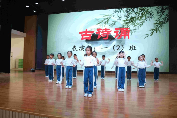 一年級古詩誦讀靈動有趣。以小組誦讀的形式,演繹了《江南》《詠鵝》《游子吟》《靜夜思》《詩說新語》《長歌行》等詩詞,中華古詩詞的文化傳承在孩子們心中生根發(fā)芽。
