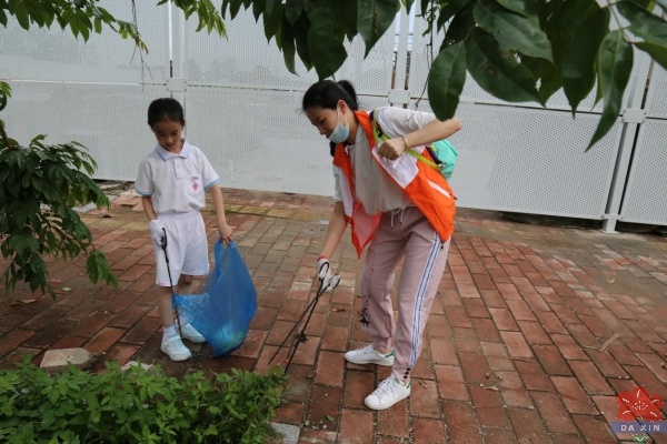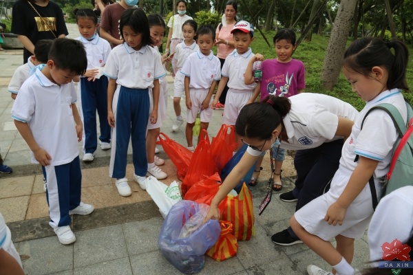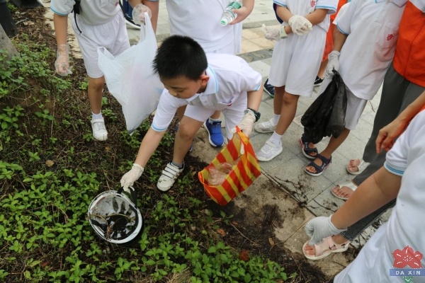 整個活動以班級為單位,大信學(xué)校一(3)班和二(3)班都有志愿服務(wù)小組及其組長。活動過程中,家長與孩子密切配合,積極主動的拿著垃圾袋,戴著手套把江邊的煙頭,塑料袋,飲料瓶等垃圾一一撿起。孩子們都覺得這樣的活動意義非凡,大家的積極性都很高,雖滿頭大汗,仍覺得樂意無窮。