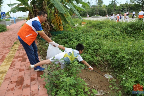 當(dāng)天下午3時,學(xué)校親子志愿服務(wù)隊約100人與其他石岐區(qū)政府部門、社區(qū)、中小學(xué)親子義工隊組成的龐大志愿者團隊,分別來到各自指定的區(qū)域開展志愿活動,1000多名志愿者齊聚岐江河畔共同為岐江河梳妝打扮。