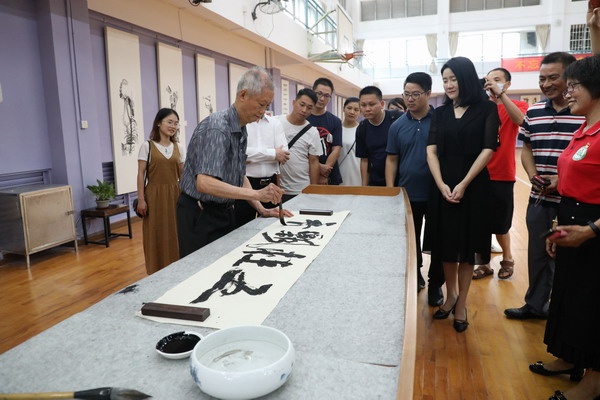 為傳承和弘揚(yáng)中華優(yōu)秀傳統(tǒng)文化,推進(jìn)學(xué)校書(shū)法教育,培養(yǎng)學(xué)生對(duì)書(shū)法的興趣,9月25日下午,五桂山學(xué)校在體育館舉辦了“家風(fēng)傳承——駱津喬、駱立君兄弟書(shū)畫(huà)展暨中山市書(shū)法進(jìn)校園活動(dòng)”。著名漫畫(huà)家方唐先生、五桂山黨工委副書(shū)記、人大工委主任武裝部部長(zhǎng)李佳利以及中山市書(shū)法協(xié)會(huì)主席駱培華先生,中山市教師書(shū)法協(xié)會(huì)主席李武耀老師、中山市教研室書(shū)法教研負(fù)責(zé)人梁雪菊老師出席活動(dòng)。