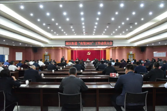 3月11日,南區(qū)街道召開“攻堅(jiān)2021”工作動(dòng)員大會(huì),動(dòng)員全街道上下一心、錨定目標(biāo)、苦干實(shí)干、攻堅(jiān)克難,奮力實(shí)現(xiàn)第一季度開門紅、全年滿堂紅。