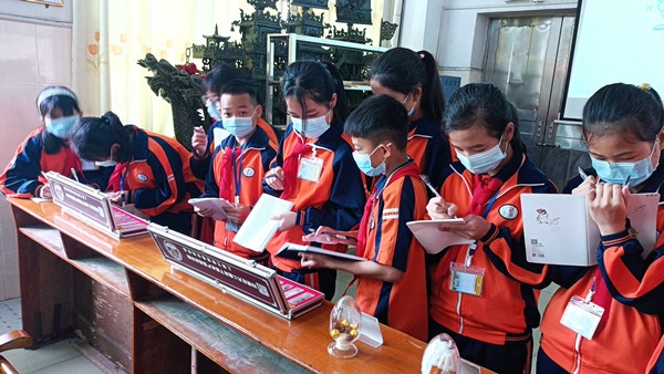 “我莊嚴(yán)宣誓,牢記歷史使命,弘揚(yáng)硝煙精神,自覺(jué)抵制毒品誘惑…”學(xué)生們手握著拳頭,用堅(jiān)定響亮的聲音表達(dá)了拒絕毒品的決心和態(tài)度。