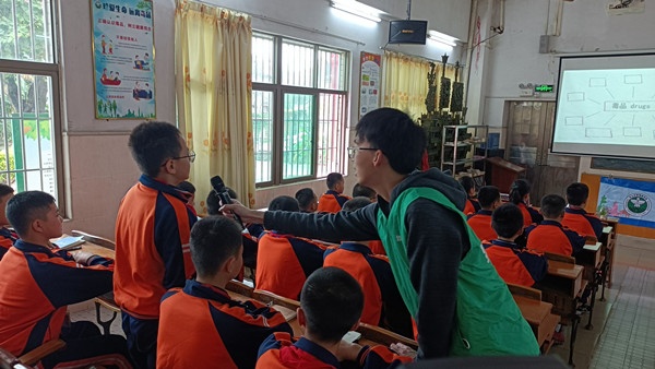 在課程開(kāi)始前,禁毒社工現(xiàn)場(chǎng)讓學(xué)生們首先觀摩了一系列的仿真毒品,并且逐一進(jìn)行了介紹,讓學(xué)生們都對(duì)毒品有一個(gè)初步的了解和認(rèn)識(shí)。隨后,德育主任謝平老師在課堂上利用多媒體設(shè)備,以圖文并茂的方式詳細(xì)講解了毒品的種類和形狀,它對(duì)人體的危害和毒品等相關(guān)知識(shí),以及吸食毒品對(duì)個(gè)人、家庭以及社會(huì)造成的嚴(yán)重危害。為了加深學(xué)生們的認(rèn)識(shí),課上還穿插了模擬吸毒的體驗(yàn)環(huán)節(jié),充分讓學(xué)生們感受到毒品對(duì)健康的危害。